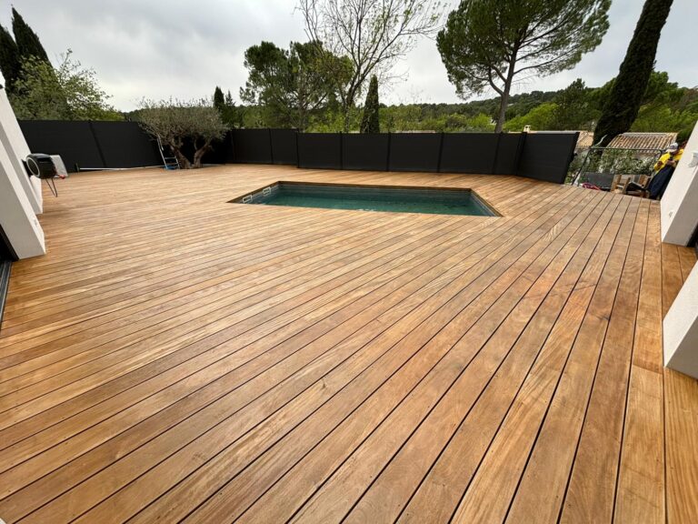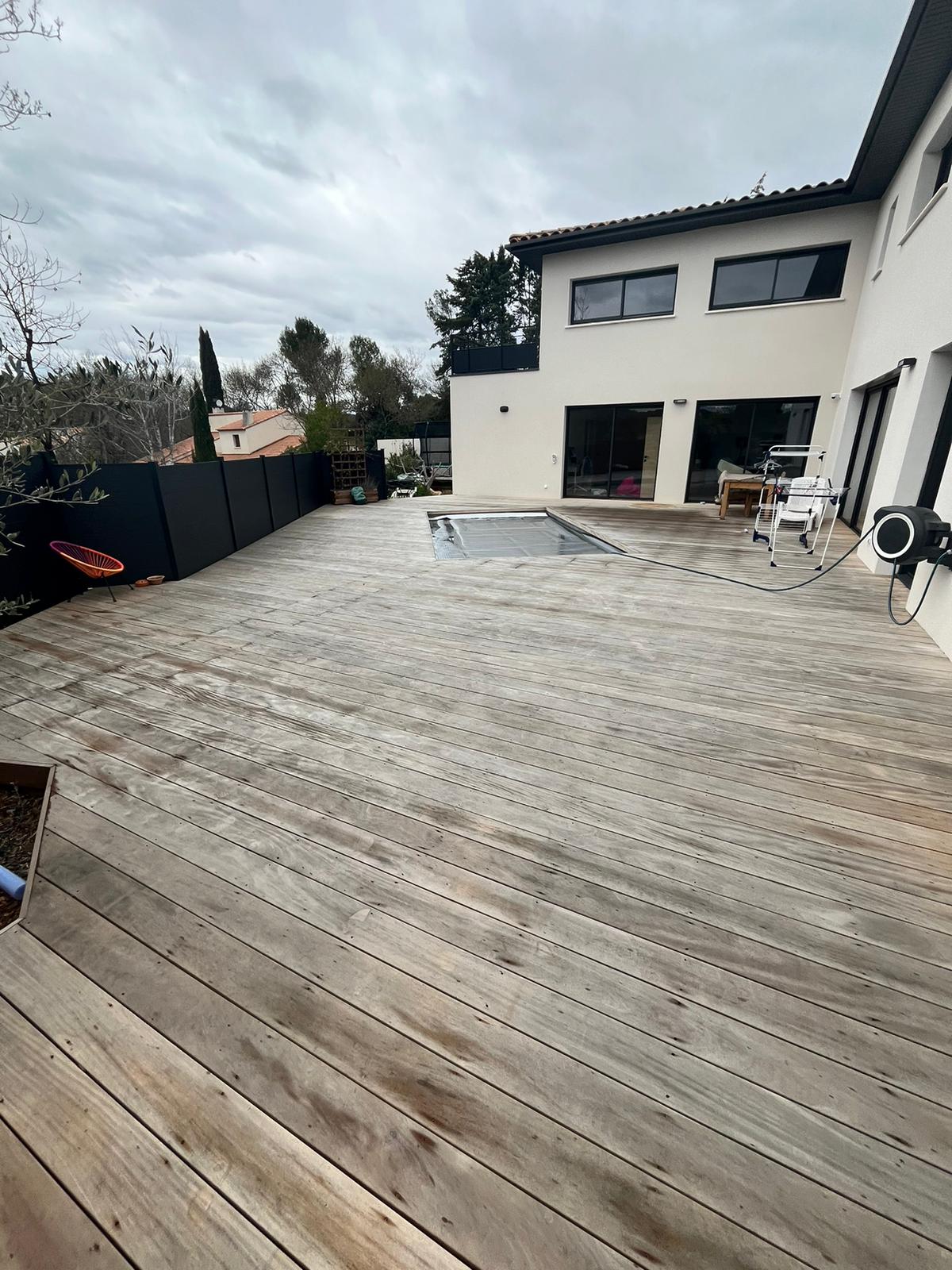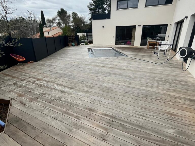 Un entretien régulier est essentiel pour préserver l’aspect et la durabilité d’une terrasse bois, en particulier sur des essences exotiques exposées.